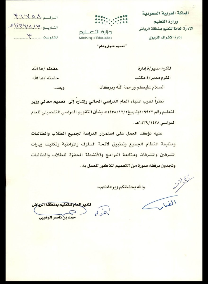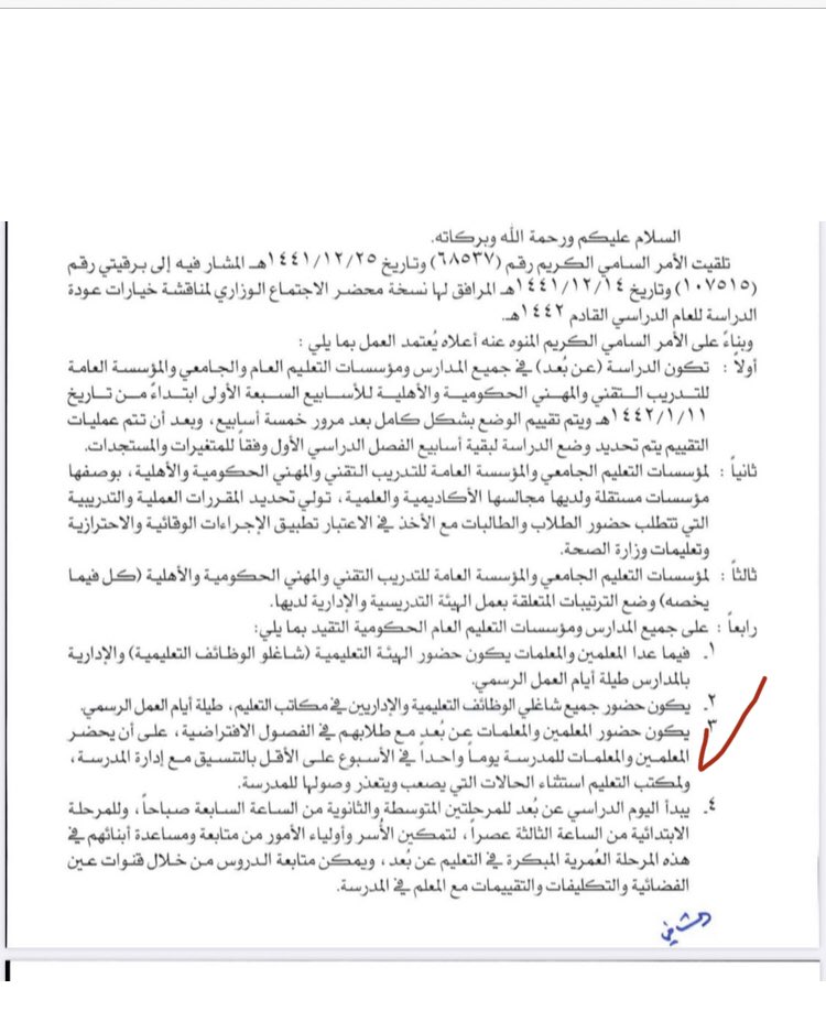 كل شي عن الرياض On Twitter بحسب التعميم رقم 110026 من وزاره التعليم لا يحق لقائد المدرسة إجبار المعلمين للحضور إلا يوم واحد في الأسبوع عند الضرورة ويكون حضور المعلم عن بعد